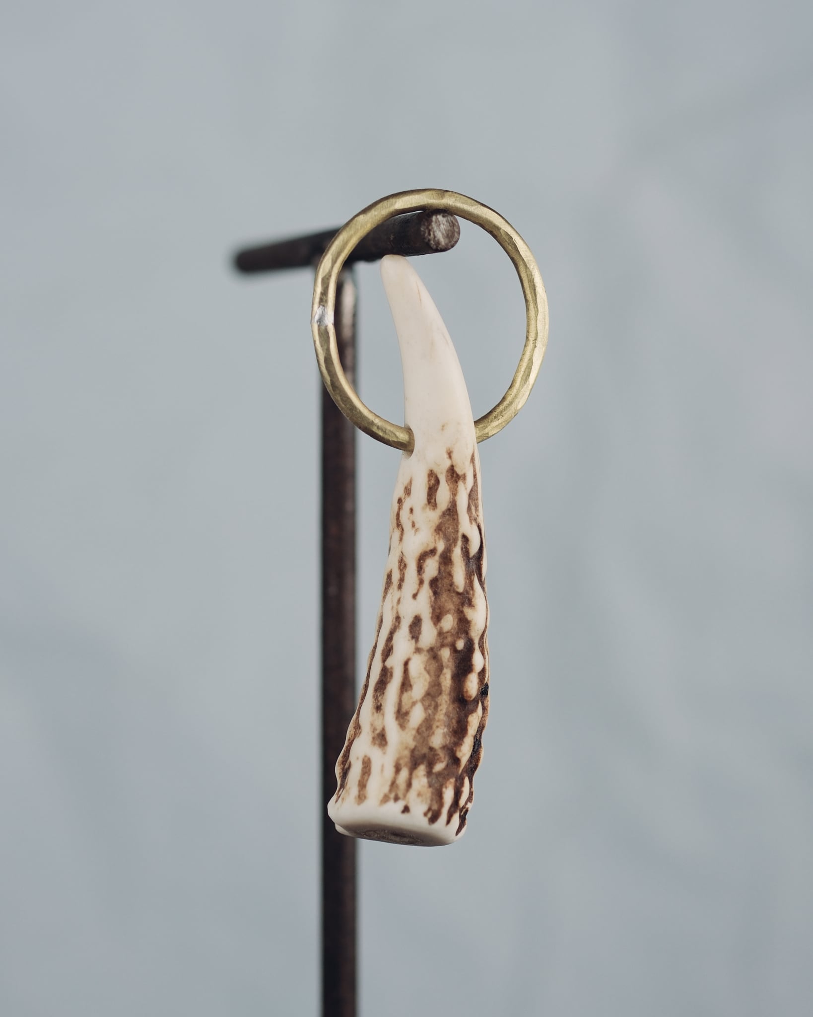 無骨ながらも暖かみのある deer whistles はひとつひとつ形や音に個性があり、機能を持ったお守りとして作られました。素材は北海道のエゾ鹿の角で出来ています。気持ちよくシェイプされているので口に当てた時に不思議としっくりきます。真鍮無垢の金具も職人の手仕事によるもの。