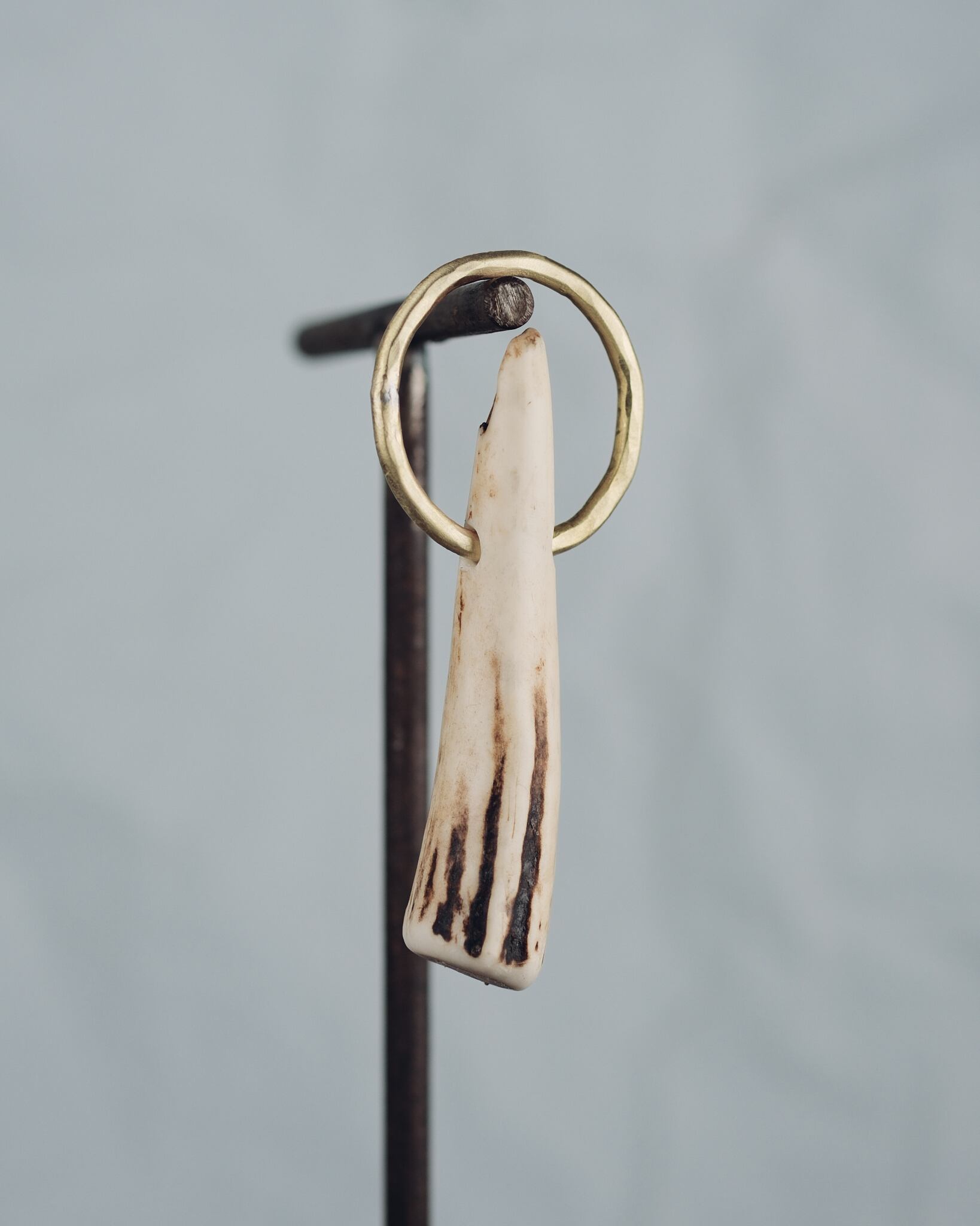 無骨ながらも暖かみのある deer whistles はひとつひとつ形や音に個性があり、機能を持ったお守りとして作られました。素材は北海道のエゾ鹿の角で出来ています。気持ちよくシェイプされているので口に当てた時に不思議としっくりきます。真鍮無垢の金具も職人の手仕事によるもの。