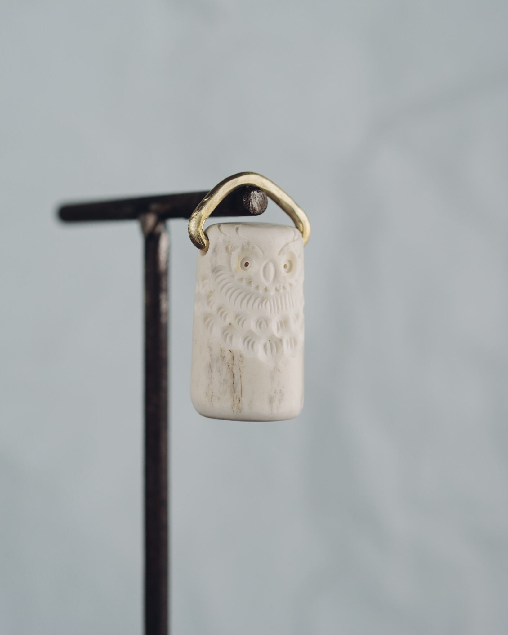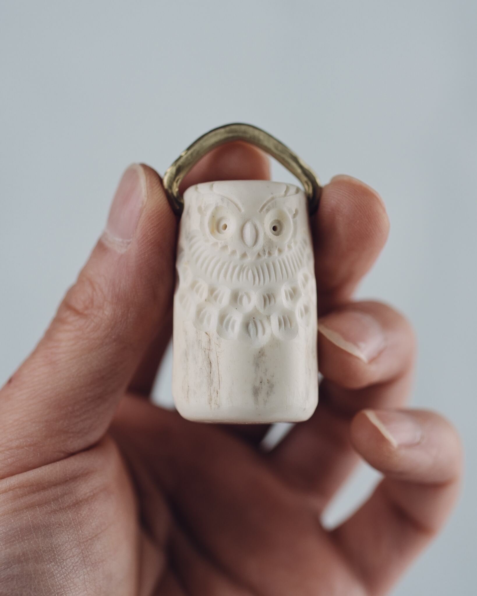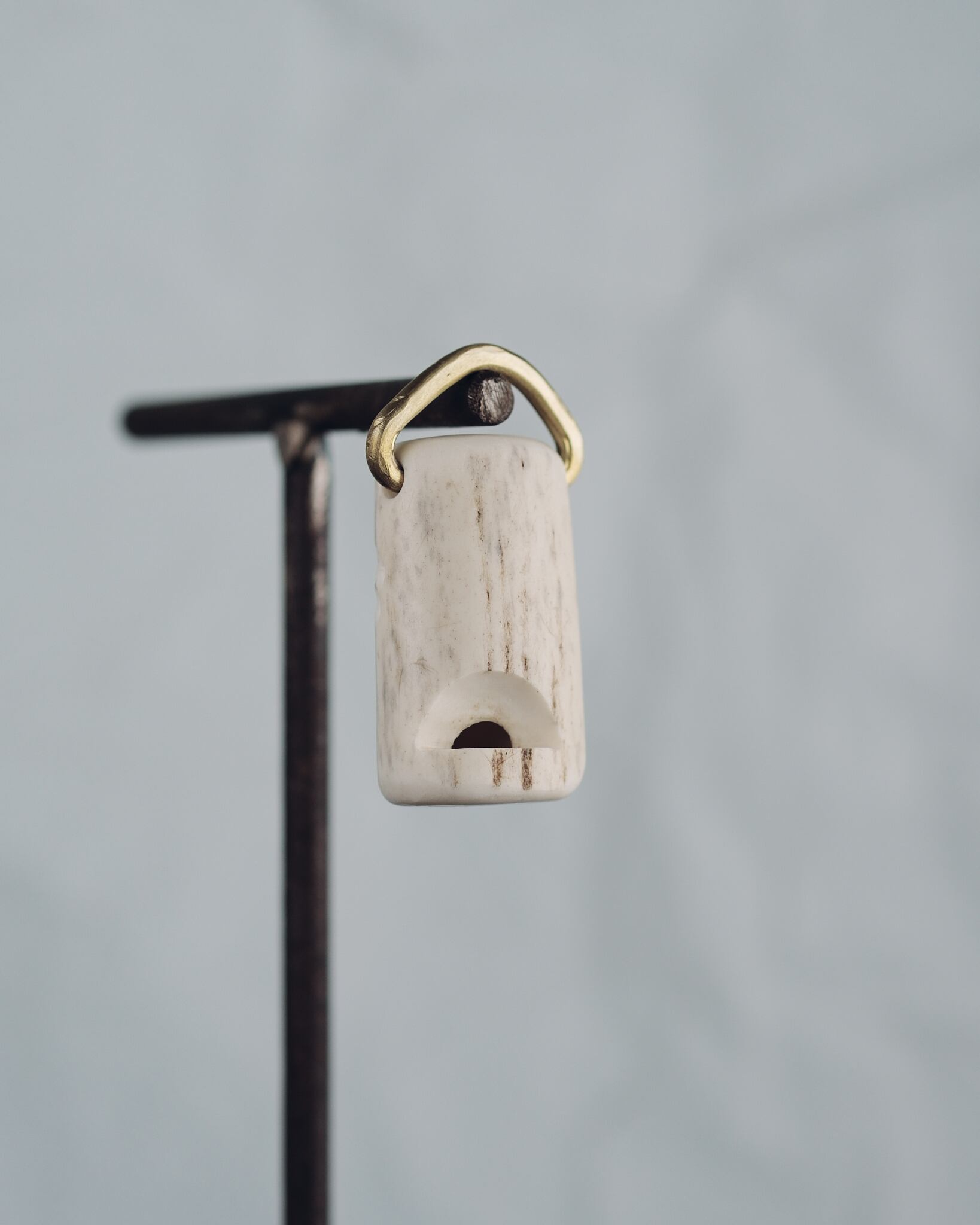 無骨ながらも暖かみのある deer whistles はひとつひとつ形や音に個性があり、機能を持ったお守りとして作られました。素材は北海道のエゾ鹿の角で出来ています。気持ちよくシェイプされているので口に当てた時に不思議としっくりきます。真鍮無垢の金具も職人の手仕事によるもの。