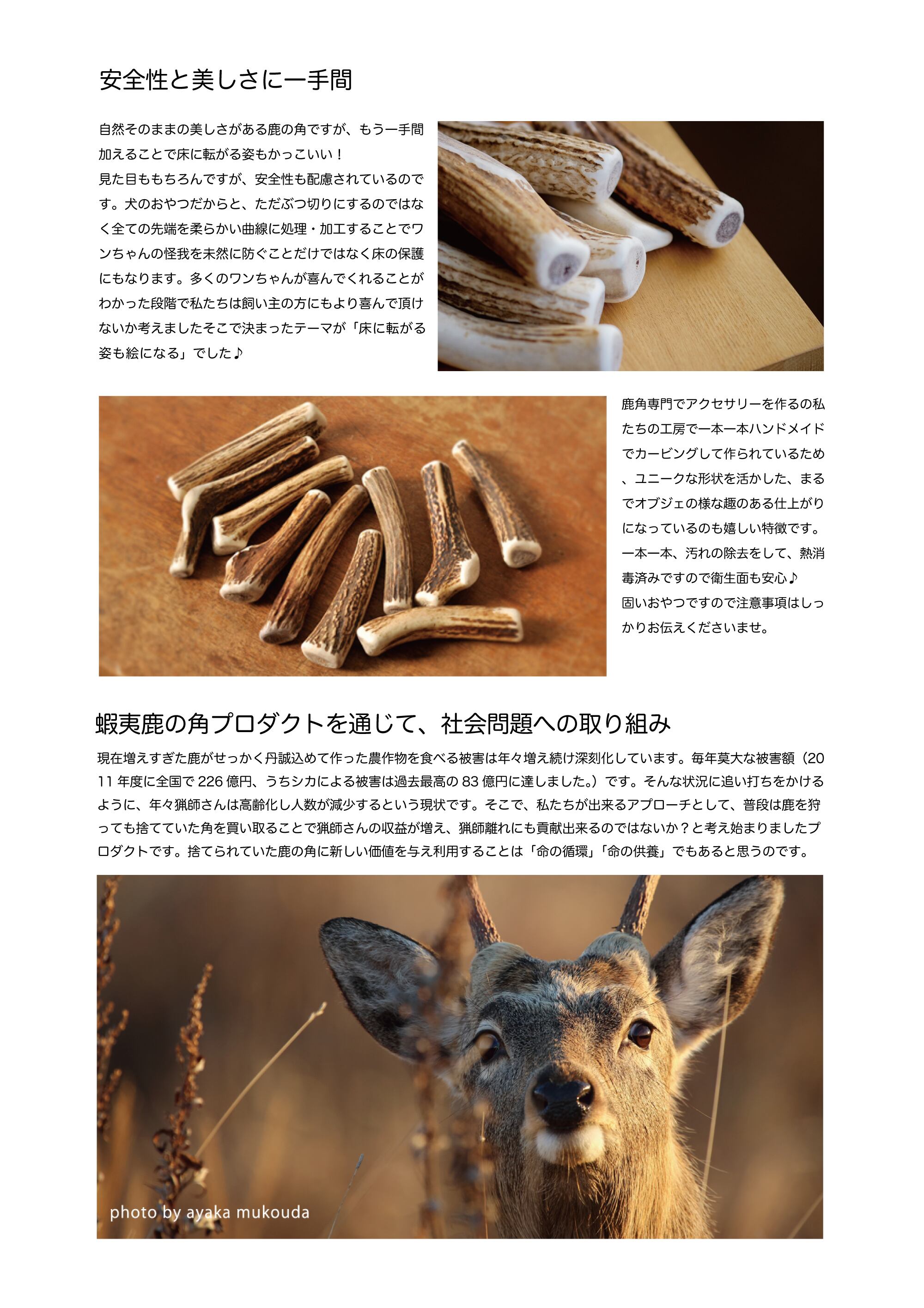 dddgのスタンダードな商品群。見た目が美しくワンちゃんが特に喜ぶ「随」が真ん中に走っているためハーフ、クォーターよりも長持ちして経済的。鹿の角が好物と分かっている場合これがオススメ。