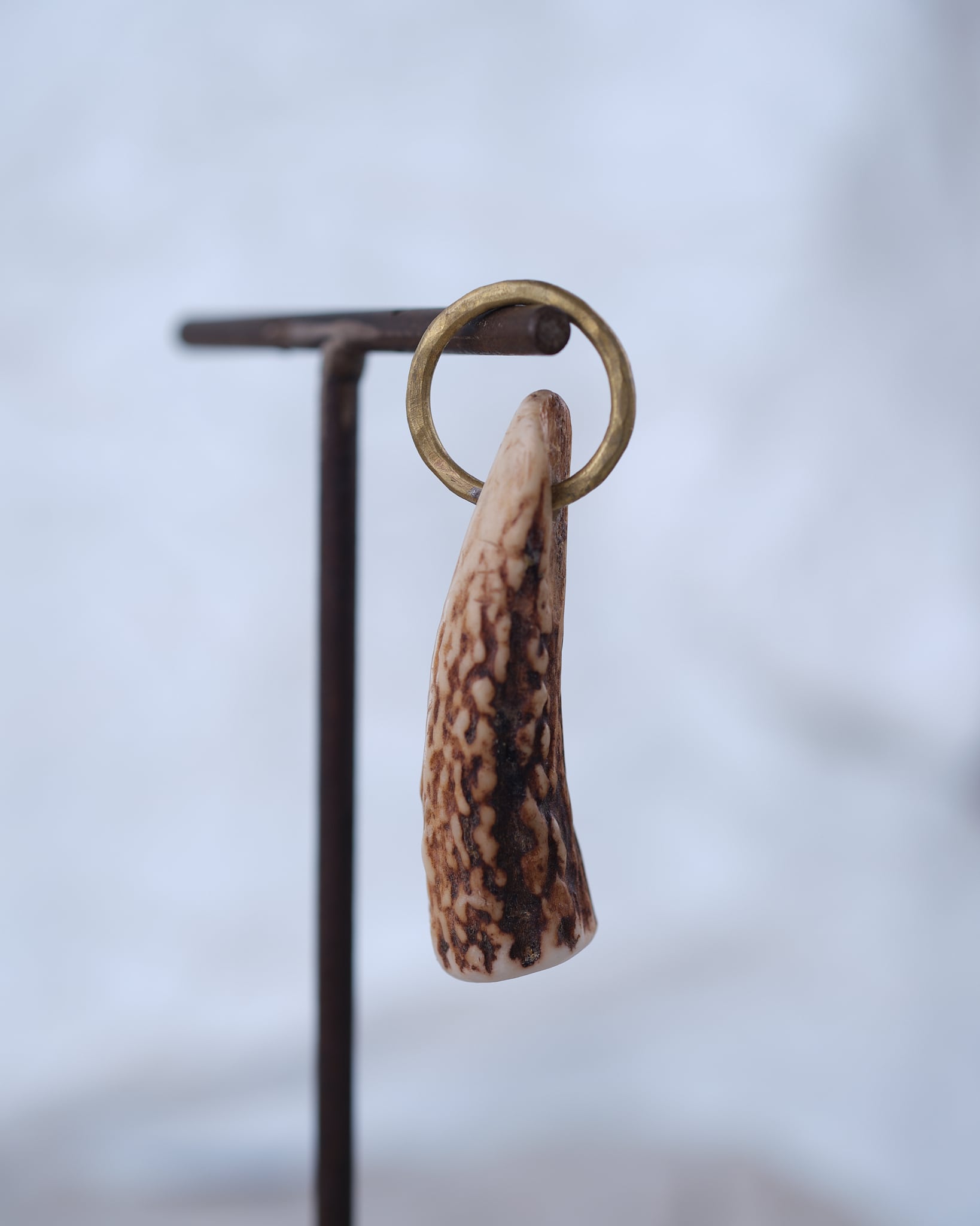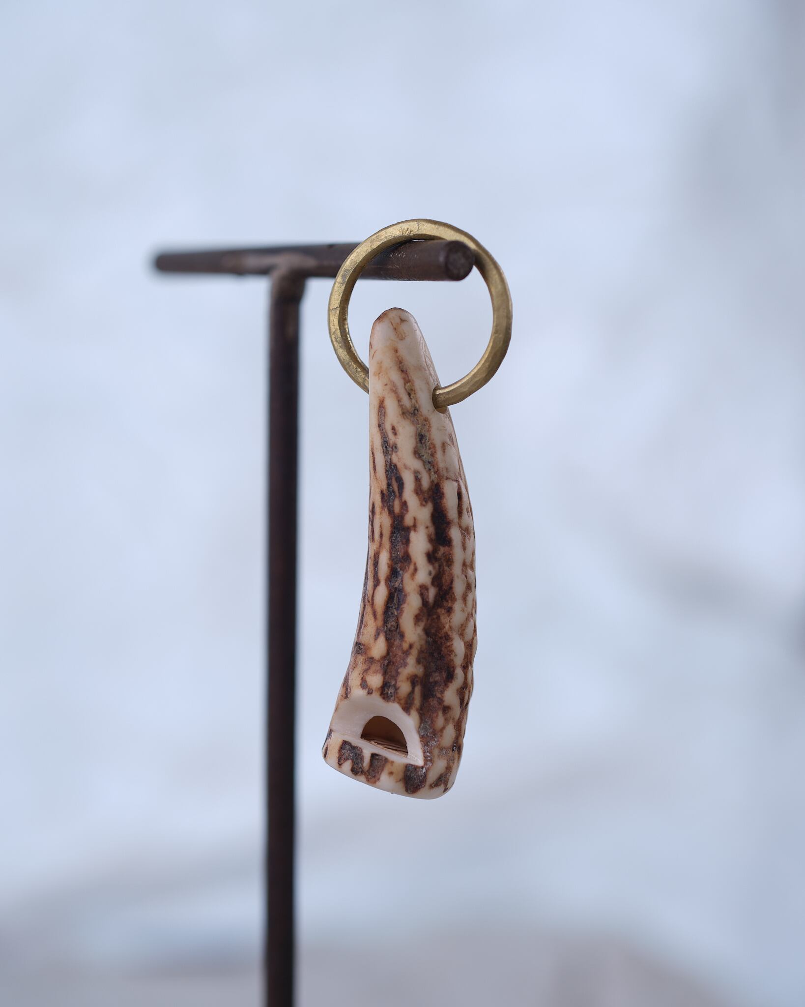 無骨ながらも暖かみのある deer whistles はひとつひとつ形や音に個性があり、機能を持ったお守りとして作られました。素材は北海道のエゾ鹿の角で出来ています。気持ちよくシェイプされているので口に当てた時に不思議としっくりきます。真鍮無垢の金具も職人の手仕事によるもの。ペンダントやキーホルダーとしてお使いいただけます。