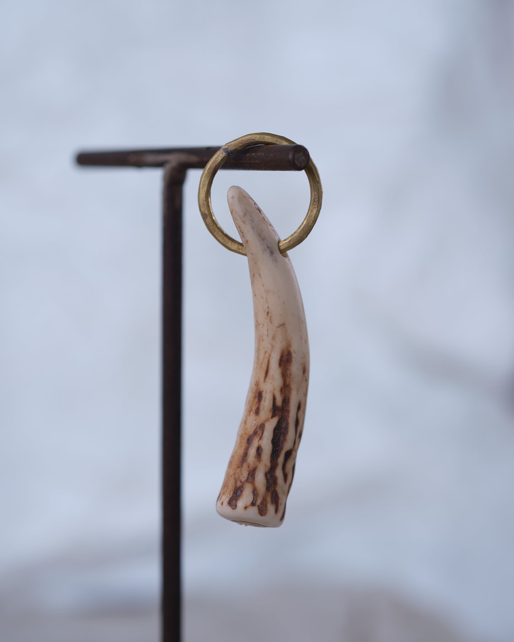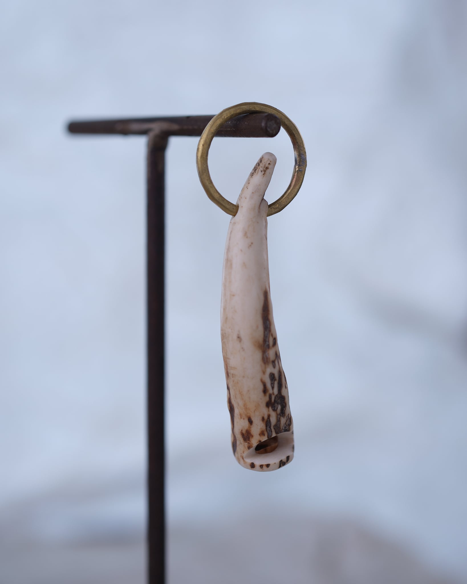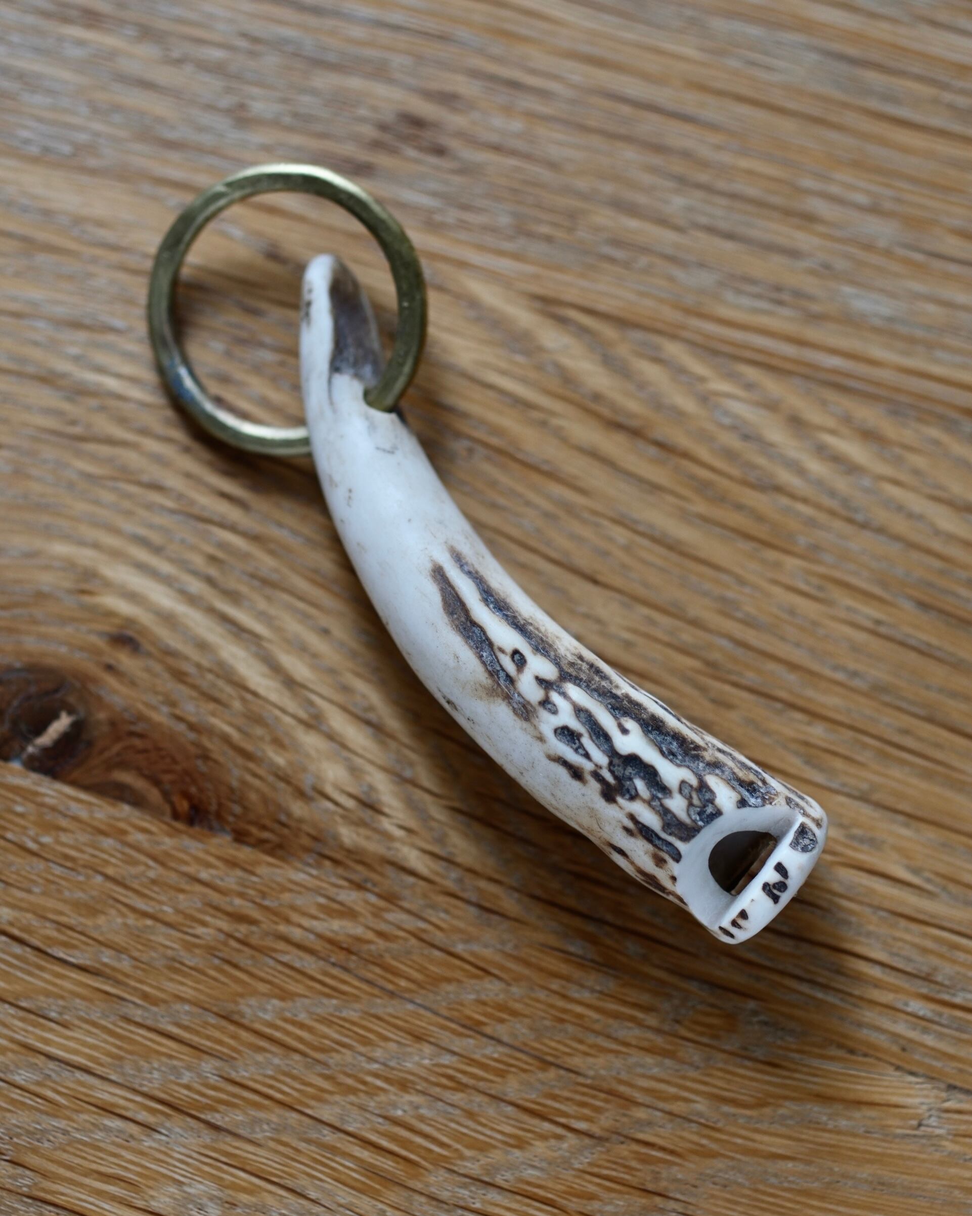 無骨ながらも暖かみのある deer whistles はひとつひとつ形や音に個性があり、機能を持ったお守りとして作られました。素材は北海道のエゾ鹿の角で出来ています。気持ちよくシェイプされているので口に当てた時に不思議としっくりきます。真鍮無垢の金具も職人の手仕事によるもの。ペンダントやキーホルダーとしてお使いいただけます。