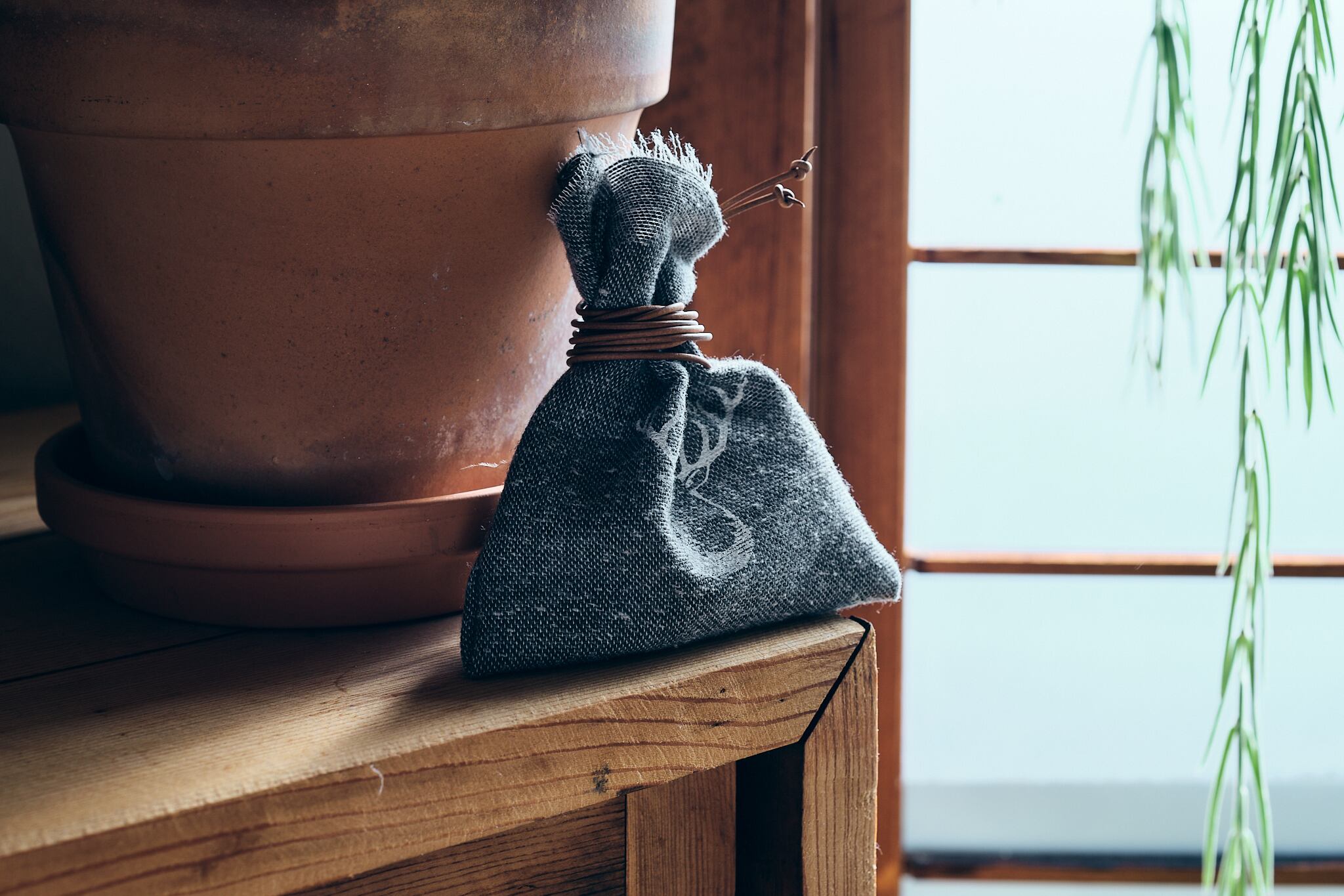 附属の保存袋は未使用の古布を利活用して製作しています。1種類毎使用している布が無くなり次第、プリント、素材や色が変更になります。おまけ程度にお考えください。ハトメと革紐を使ってなんとなく巻けばめんこい巾着に。