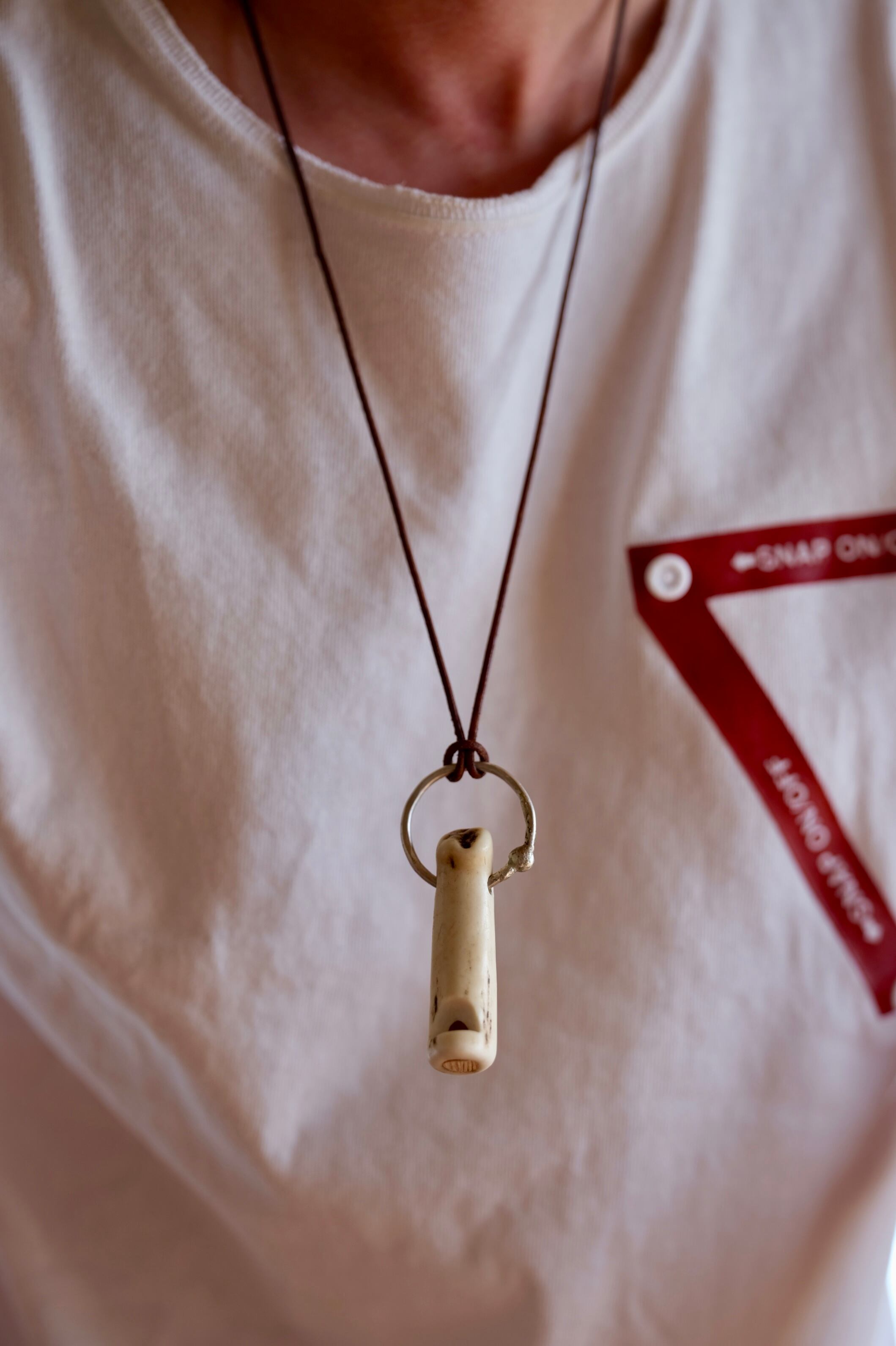 無骨ながらも暖かみのある deer whistles はひとつひとつ形や音に個性があり、機能を持ったお守りとして作られました。素材は北海道のエゾ鹿の角で出来ています。気持ちよくシェイプされているので口に当てた時に不思議としっくりきます。真鍮無垢の金具も職人の手仕事によるもの。ペンダントやキーホルダーとしてお使いいただけます。