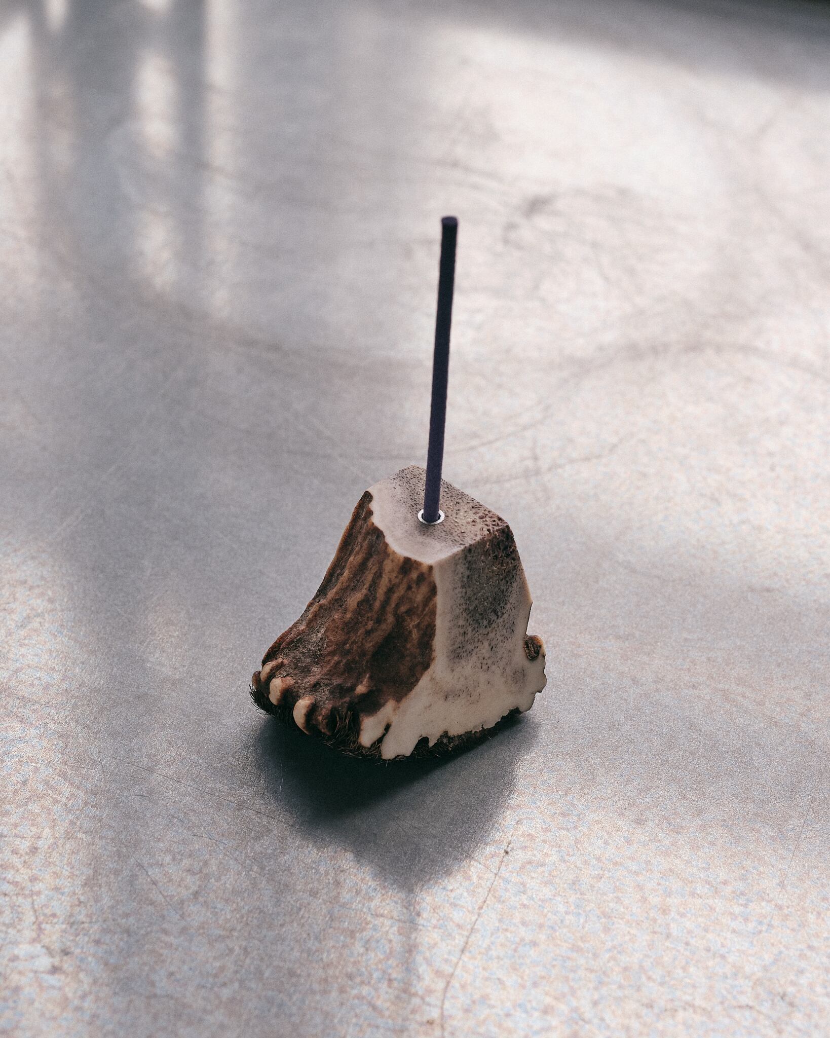 北海道の蝦夷鹿角の根本の部位でつくられたお香立て。