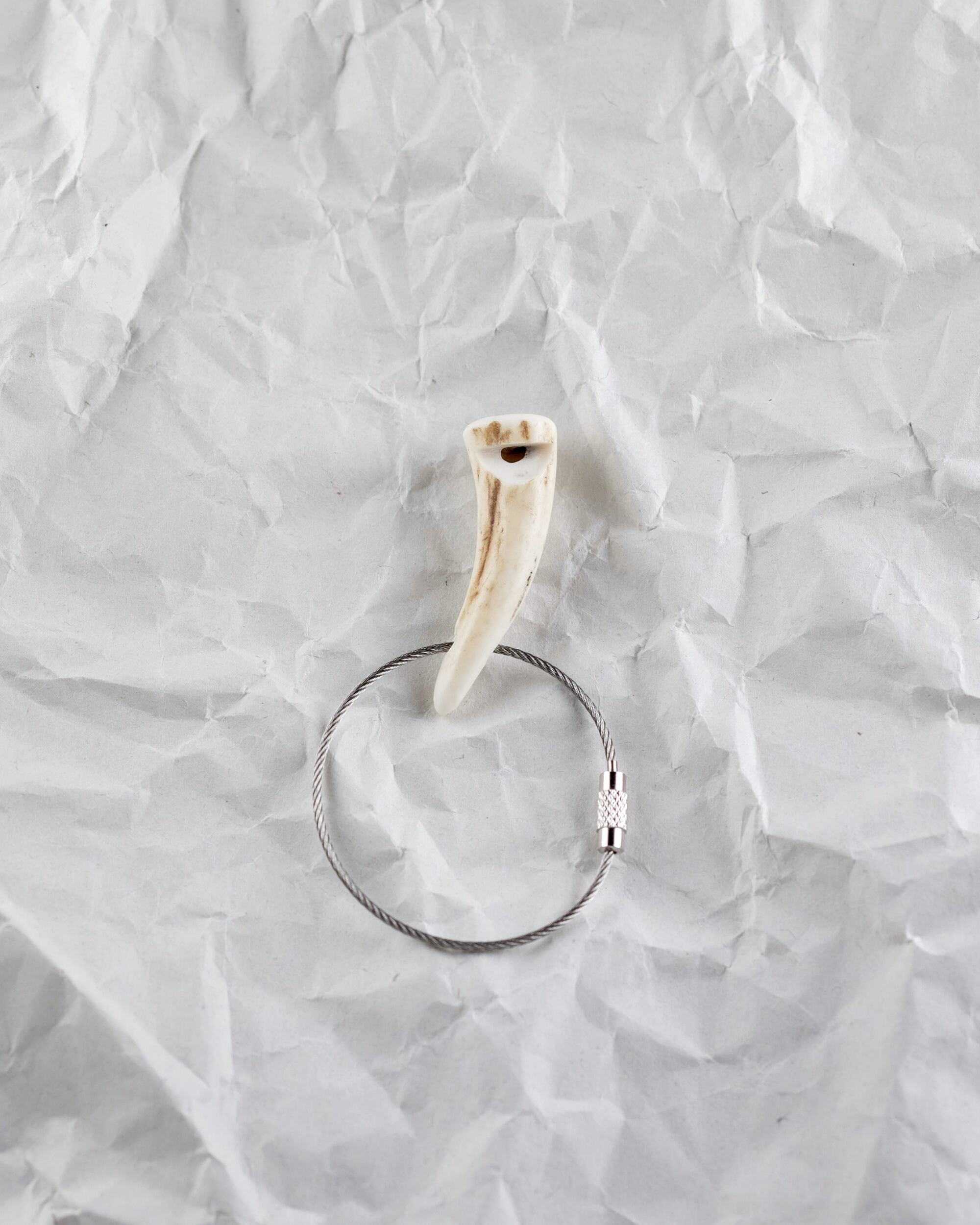 無骨ながらも暖かみのある deer whistles はひとつひとつ形や音に個性があり、機能を持ったお守りとして作られました。素材は北海道のエゾ鹿の角で出来ています。気持ちよくシェイプされているので口に当てた時に不思議としっくりきます。