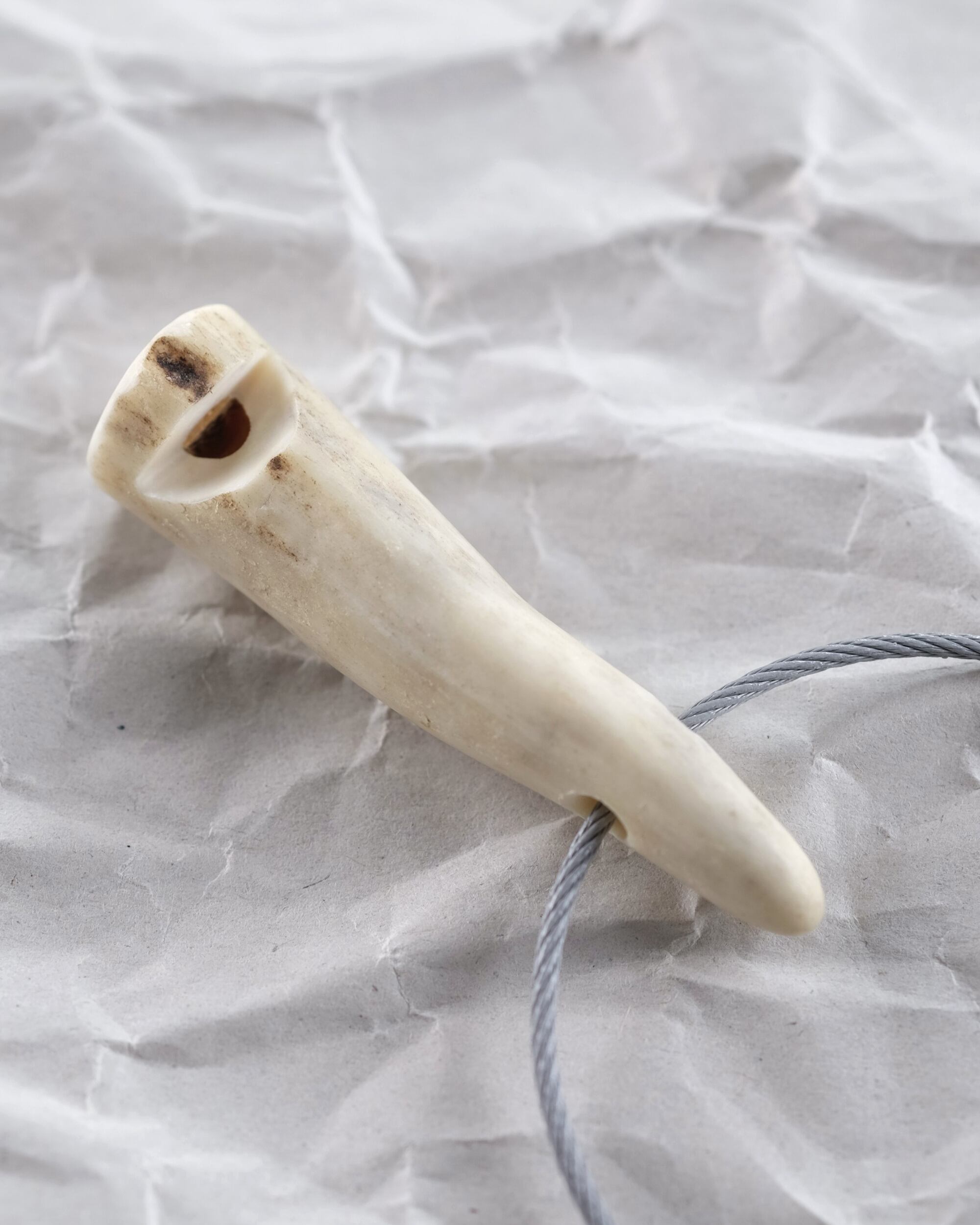 無骨ながらも暖かみのある deer whistles はひとつひとつ形や音に個性があり、機能を持ったお守りとして作られました。素材は北海道のエゾ鹿の角で出来ています。気持ちよくシェイプされているので口に当てた時に不思議としっくりきます。